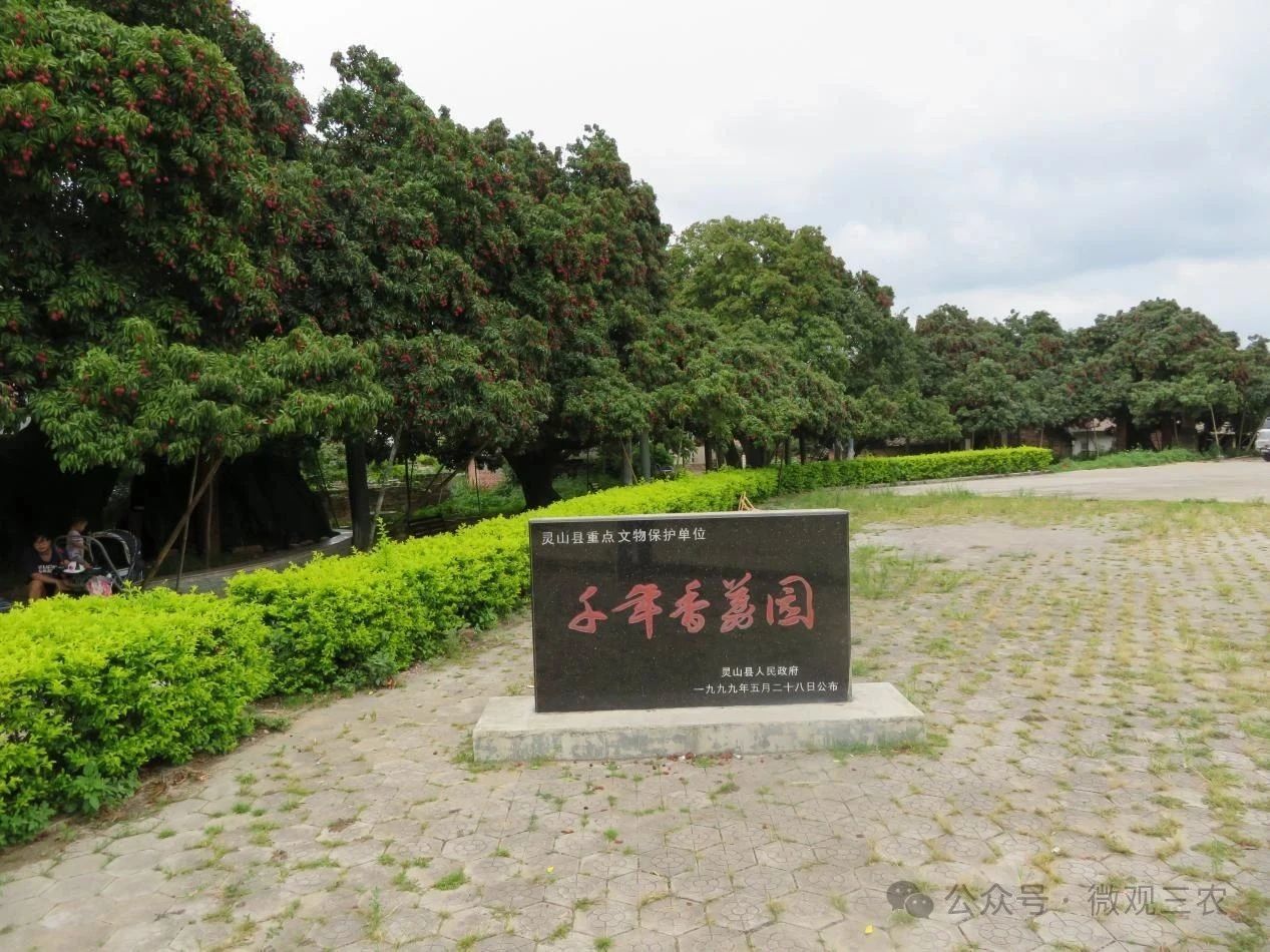 灵山县内各地遍布荔枝古树,已知树龄达800年以上的现存古荔有1500多株,其中位于灵山县新圩镇邓家村委会塘坡村的一株灵山香荔古树,经鉴定已有1500多年的历史,是我国现存树龄最长的“灵山香荔”母树,被认为是两广香荔的始祖。灵山县深入挖掘1500多年的古荔文化,以一颗灵山荔枝带动文化、农业、工业、物流、会展等产业发展,不断深化灵山荔枝品牌形象。