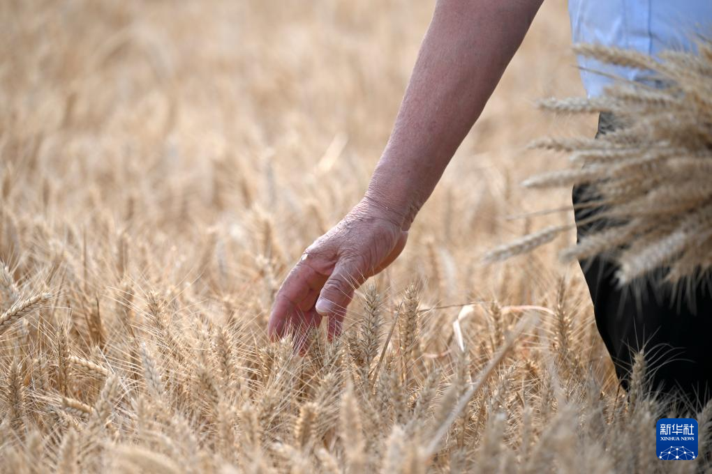 5月28日,徐淙祥在阜阳市太和县旧县镇的田间察看小麦的成熟情况。新华社记者 黄博涵 摄