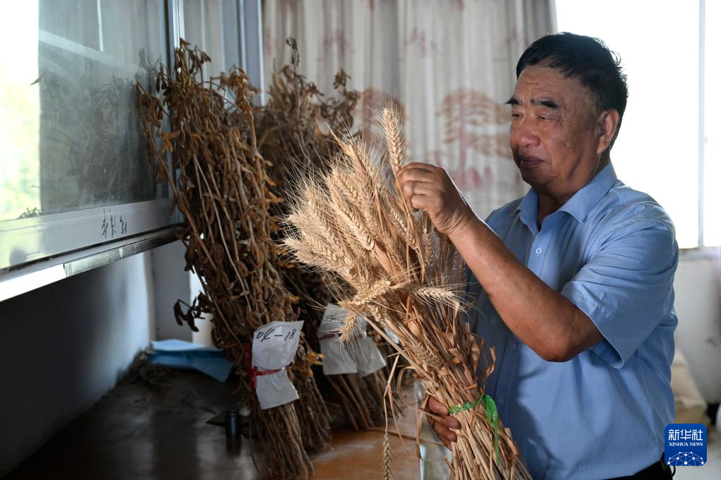 7月20日,徐淙祥在家中察看用于研究的小麦样品。新华社记者 黄博涵 摄