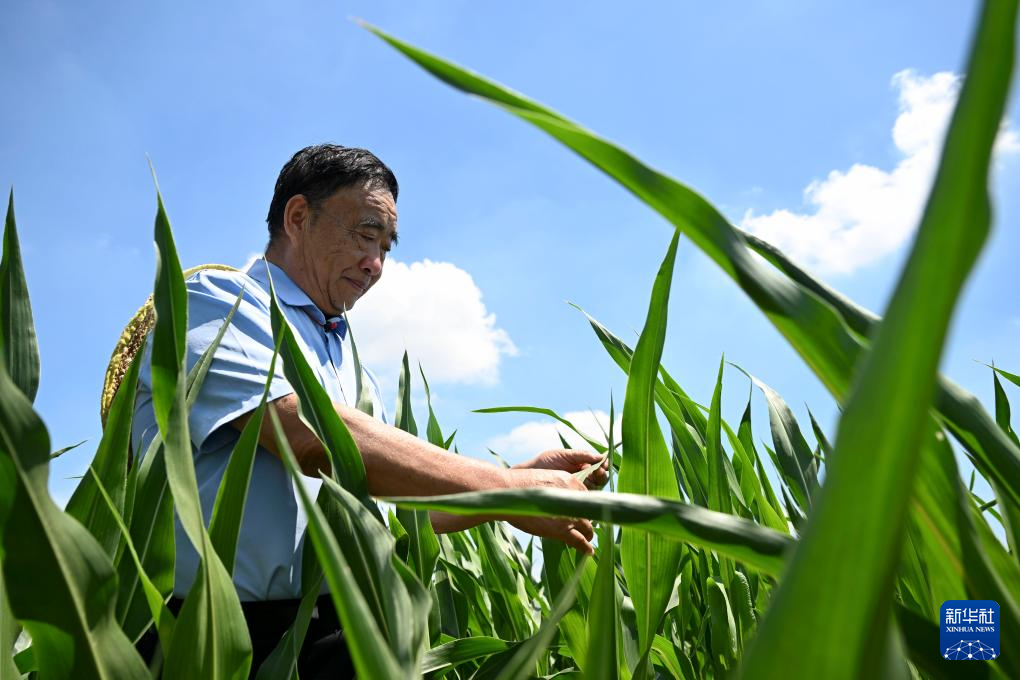 7月20日,徐淙祥在阜阳市太和县旧县镇的田间察看玉米生长情况。新华社记者 黄博涵 摄