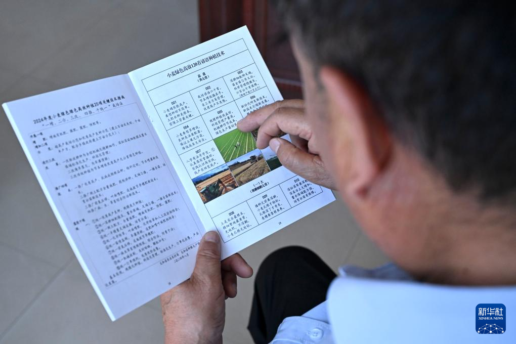 7月20日,徐淙祥在家中翻看他编写的小麦种植顺口溜。新华社记者 黄博涵 摄